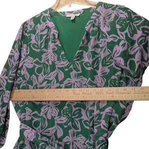 Keywords: Marissa Olivia, Floral Dress, V Neck Dress, Tie Waist Dress, Green Dress, Purple Dress, 3/4 Sleeve Dress, XL Dress, Casual Dress, Boho Dress, Summer Dress, Spring Dress, Floral Print Dress
