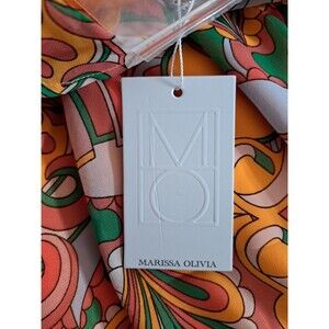 Marissa Olivia Orange Floral Boho Hippie Dress Women’s V-Neck Ruffle Small NWT