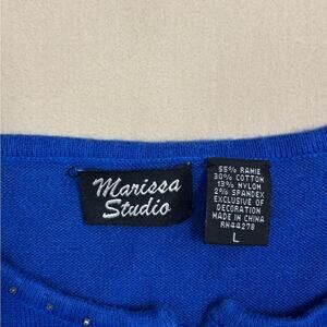 Marissa Studio Vintage Royal Blue Cardigan with Beaded Palm Trees Size Large