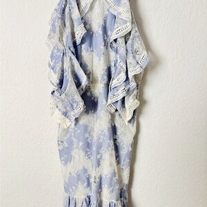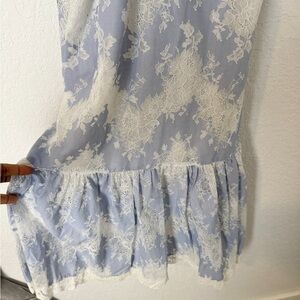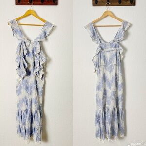 Whimsical ruffles cascade down the cold-shoulder bodice of this romantic Marissa Webb dress detailed with lace accents and a trumpet hem.