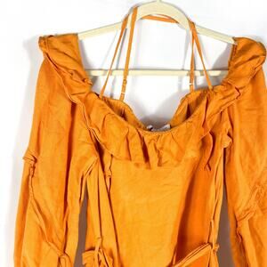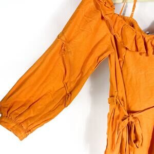 Marissa Webb Cold Shoulder Dress Dress Orange Linen Blend Long Sleeve Sz 12