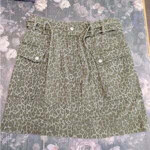 Marissa Webb Collective Leopard Tie Waist Belted Mini Skirt Green Womens Size 10