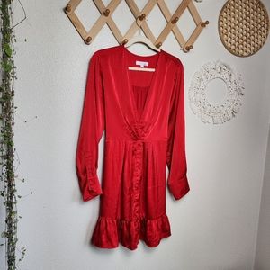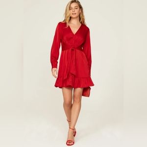 Marissa Webb Collective Satin Tie Front Long-Sleeve Mini Dress In Red Size 12