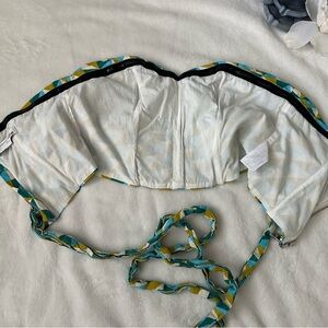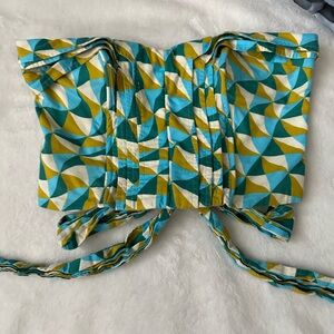 Marissa Webb Collective Blue & Green Geometric Tie Waist Strapless Corset Bustier Top
