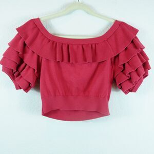 Marissa Webb Cropped Top Sz M Red Knit Cotton Blend Ruffles Coquette Date Night