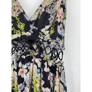Marissa Webb Deanna Black Floral Print Silk Sleeveless V-Neck Midi Dress Size XS