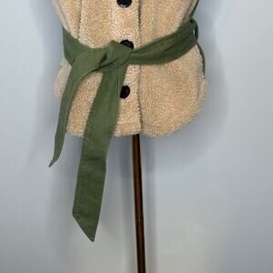 Marissa Webb Frankie Sherpa Twill XS Green Beige Drop Shoulder Vest Sash Belt