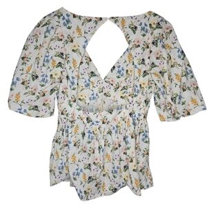 Marissa Webb Griffin Botanical Floral Cottagecore Puff Open Back Top Medium