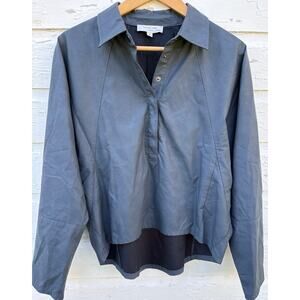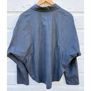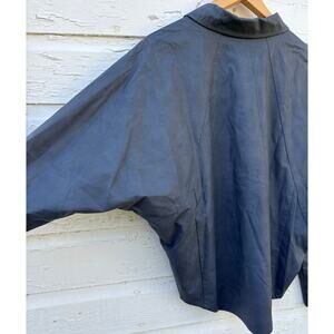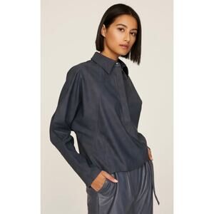 Marissa Webb Jacket Shirt Womens M Navy Blue Batwing Shirt Snap Faux Leather