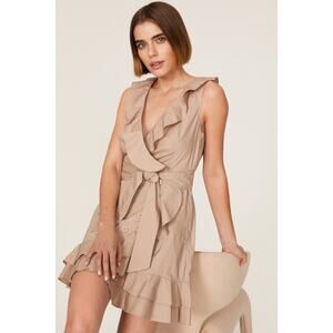 Marissa Webb Khaki Ruffle Wrap Sleeveless Mini Dress Size 6