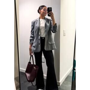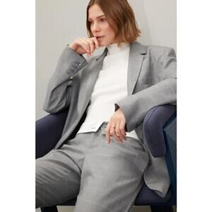 Marissa Webb Madison Boyfriend Blazer Gray Button Front Plaid Wool Sz M