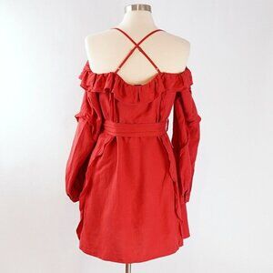 Marissa Webb Off Shoulder Linen Belted Ruffled Sun Dress - Size Large - EUC