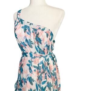This Marissa Webb One Shoulder Floral Midi Dress is a romantic, feminine silhouette designed for effortless sophistication. Featuring a soft blue and white floral print, this tiered chiffon midi dress showcases a flattering one-shoulder neckline, self-tie waist belt, and airy layered hemline. Perfect for garden parties, weddings, or elegant daytime occasions.