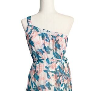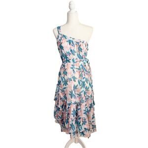 Marissa Webb One Shoulder Floral Midi Dress Blue White 8
