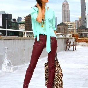 Marissa Webb Oxblood Red Leather Skinny Pants Sz 4