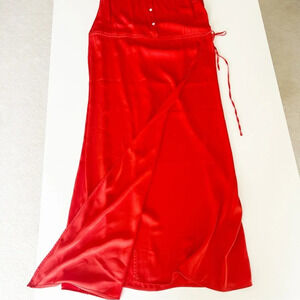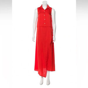 Marissa Webb Silk Shirtdress Red Sleeveless with Collar Button Closure at Front. Designer Fit: Dresses by Marissa Webb typically fit true to size. Red Neon Orange High Low adjustable waist casual summer workwear office casual cocktail vacation lightweight flowy