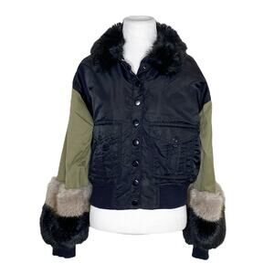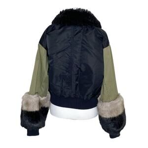 Marissa Webb Sutton Faux Fur Collar Cuffs Bomber Jacket Green Black Size S