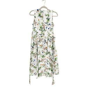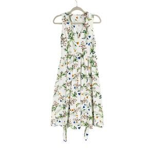 Marissa Webb White Floral Print Tie Waist V-Neck Sleeveless Midi Dress Size 4