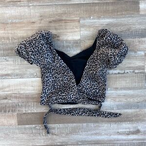 Marissa Webb leopard Diane canvas print wrap crop top size M