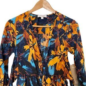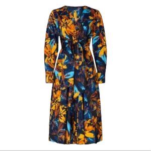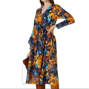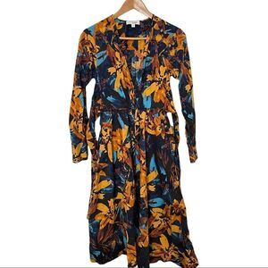 Blue lily printed poplin (97% Cotton, 3% Spandex). Hourglass.