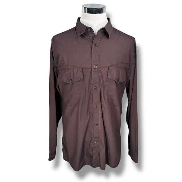 Marithé et François Girbaud Shirt Men’s 2XL XXL Brown Long Sleeve Button Up