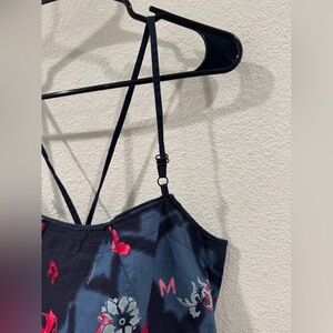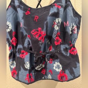 Marithe Francois Girbaud 100% Cotton Floral Blue Red Cropped Sleeveless Tank L
