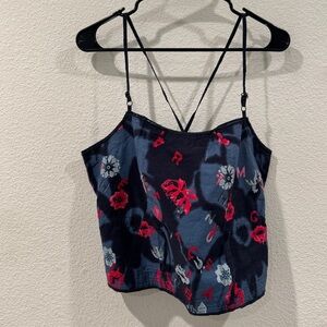 Marithe Francois Girbaud 100% Cotton Floral Blue Red Cropped Sleeveless Tank