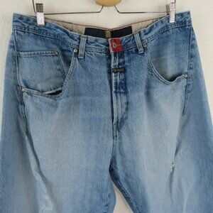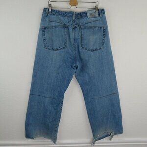Marithe Francois Girbaud 38 x 32 Mens Blue Wash Distressed Wide Leg Jeans Pants