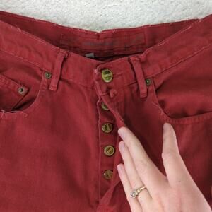 Marithe Francois Girbaud High-rise Straight Leg Jeans Red Pants Women's Size 7/8 Button Fly Stretch