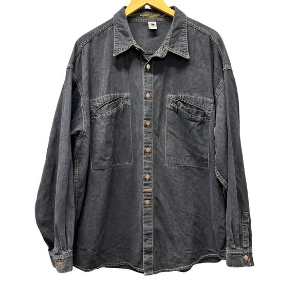 Marithe + Francois Girbaud Shirt Mens XL Black Denim Wash Button Up Vintage