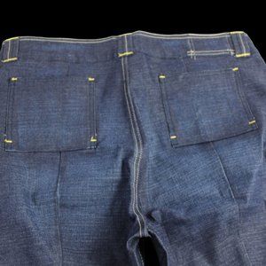 Marithe Francois Girbaud Yellow Logo Blue Denim Bermuda Short, Size 34/…