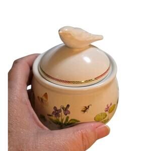 Marjolein Bastin Creamer & Sugar Bowl Ceramic Bird on Lid Wildflower Meadow Very Good Pre-Owned Condition