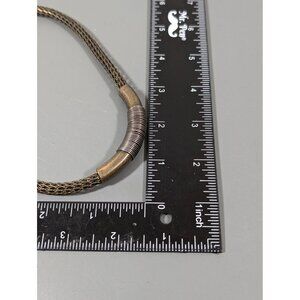 Marjorie Baer SF Bronze Tone Mixed Metal Mesh Chain Bar Pendant Necklace 21"