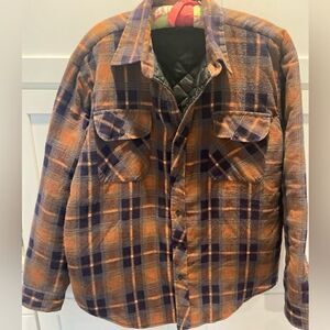 Mark 2 II Flannel Shirt Shacket Mens Large Brown Quilted Inner Layer Pockets
