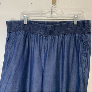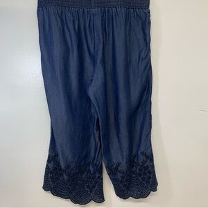 Mark Chambray Wide Leg Pants Woman XL Blue Embroidery Pull On Pockets Casual