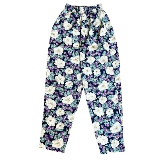 Mark & Company Vintage Large Purple White floral print peg leg pants SMALL