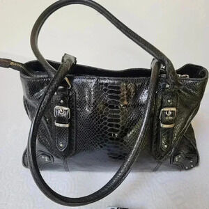 Mark Cross 1845 black leather handbag double handle see all pics for det…