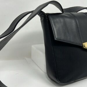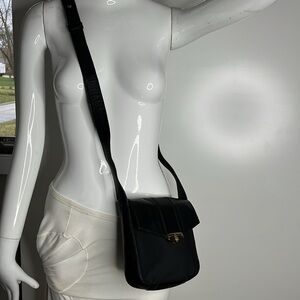 This is a beautiful Mark Cross Black Leather and Nylon Shoulder Crossbody Bag. Adjustable leather strap of 23”