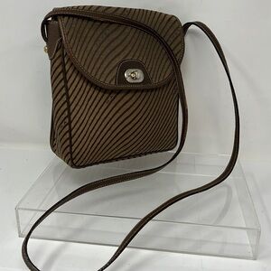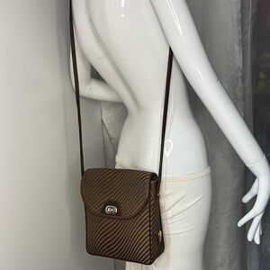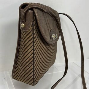 This is a beautiful Mark Cross Canvas Logo’d Flap Turnlock Crossbody Bag. Vintage cotton canvas crossbody bag with leather trim and strap. Gold tone logo at exterior side, gold tone turn- lock flap closure, Mark Cross signature throughout exterior. Leather interior with zippered wall pocket. Minor chip at metal loop of turn lock. No it wear at the piping, overall very good condition. No odors. 8” x 8” x 2.5” with 24” strap