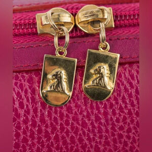 Like new vintage condition!!! Vintage Mark Cross Messenger Bag in hot pink pebbled leather with gold tone hardware. This bag features the Mark Cross logo on the front, a leather strap, and lion zipper embellishments. The top zipper closure opens up to smooth black leather inner lining with one zipper pocket for extra storage.
