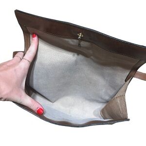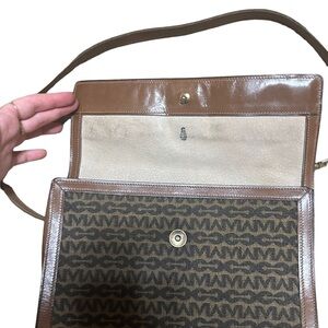 Mark Cross Vintage Monogram Purse in excellent gently used condition with fabric and leather material lined with suede. Light discoloration on the inside.