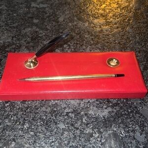 Mark Cross Vintage Red Leather Desk Pencil Set