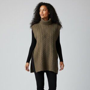 Mark Eisen Karoo Cashmere and Wool Olive/Brown Turtleneck Sweater Poncho Shrug