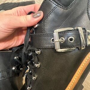 Step out in style with these chic black leather boots. Perfect for any occasion. Black leather is soft and these are like new.