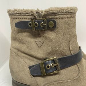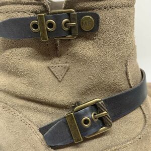 Mark Fisher Brown Suede Leather Fur Lined Women's Boots Buckle Strap Details Ankle Height Side Zip Closure Round Toe