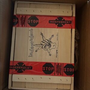 Independent skateboard trucks set in a wooden box. Features a unique design with a graphic print. Cigar cutter. Limited to 250. This is a stock photo. The set I own has never been opened it is taped shut from Indy. INCLUDES