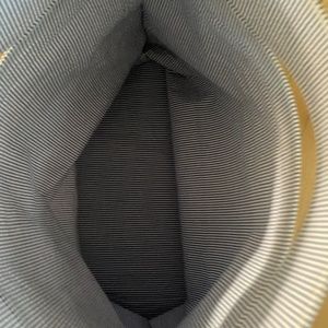 Stylish blue striped bag. Features a convenient handle. Perfect for everyday use.