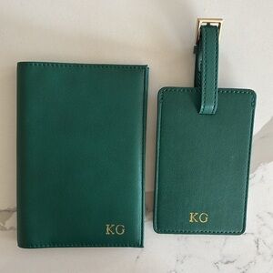 Never used evergreen passport holder and luggage tag set from Mark & Graham.