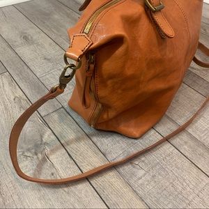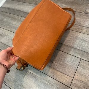 Elegant leather satchel. Features sturdy handles and adjustable strap. Perfect for everyday use.