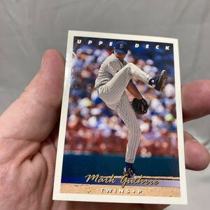 Mark Guthrie 1992 Upper Deck Card #399 Twins MLB Baseball. Very clean and well-kept condition. No major damage or stains that we saw at all. May have Some light wear from use and storage but still in good condition.